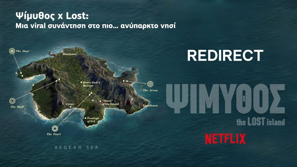 Η REDIRECT, αξιοποιώντας το viral φαινόμενο του φανταστικού νησιού, συνέδεσε δημιουργικά ένα meme της κοινότητας με τη θρυλική σειρά “Lost”, η οποία επέστρεφε στο Netflix.